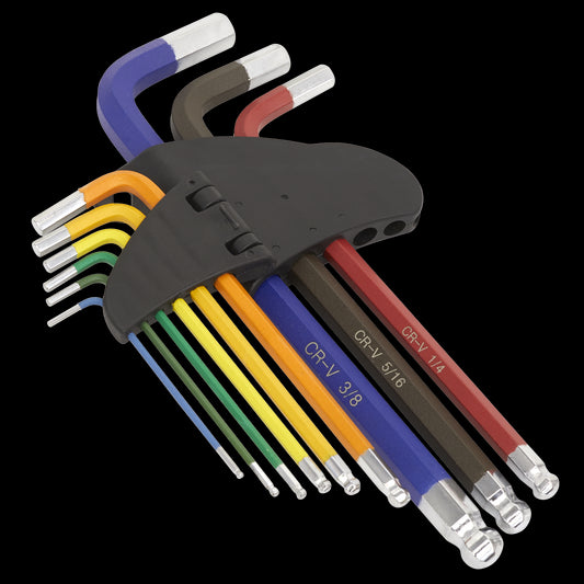Sealey Ball-End Hex Key Set 9pc Long Colour-Coded Imperial AK7197