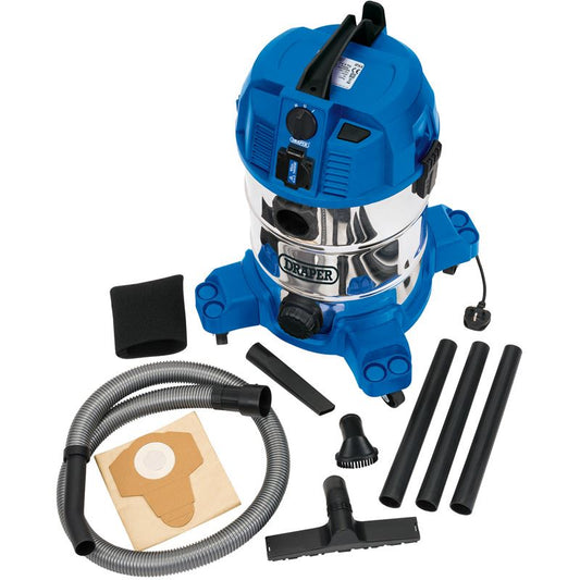 Draper 20523 30L Wet and Dry Vacuum Cleaner with Stainless Steel Tank 1600W