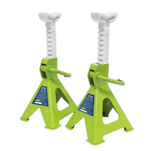 Sealey Axle Stands (Pair) 2 tonne per Stand Ratchet Type Hi-Vis Grn VS2002HV