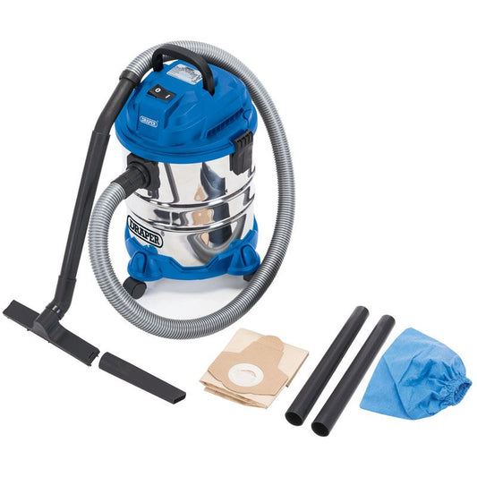 Draper WDV20BSS 230V 20L Wet And Dry industrial Vacuum Stainless Steel Tank - 20515