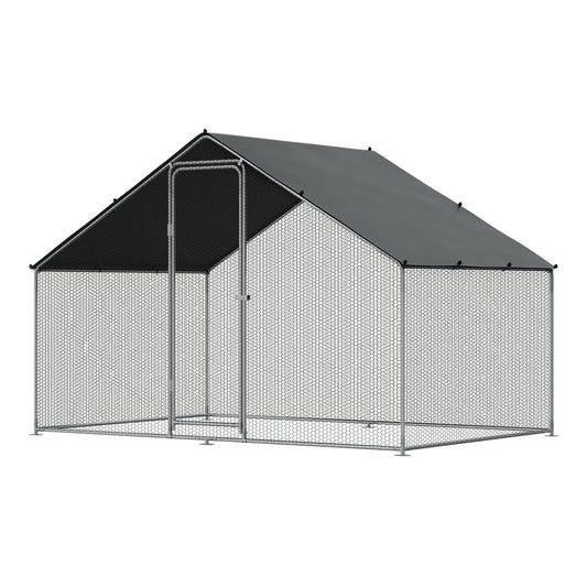 Dellonda 3x2x2m Walk-In Chicken Run, Galvanized Steel, Roof Cover, PVC Coated Chicken Wire DG278