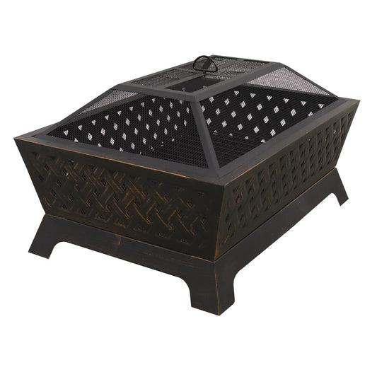 Dellonda 35" Rectangular Outdoor Fire Pit, Antique Bronze Effect DG44