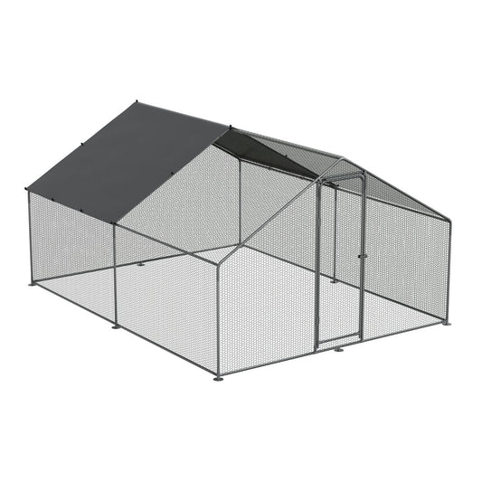 Dellonda 3x4x2m Walk-In Chicken Run, Galvanized Steel, Roof Cover, PVC Coated Chicken Wire DG279