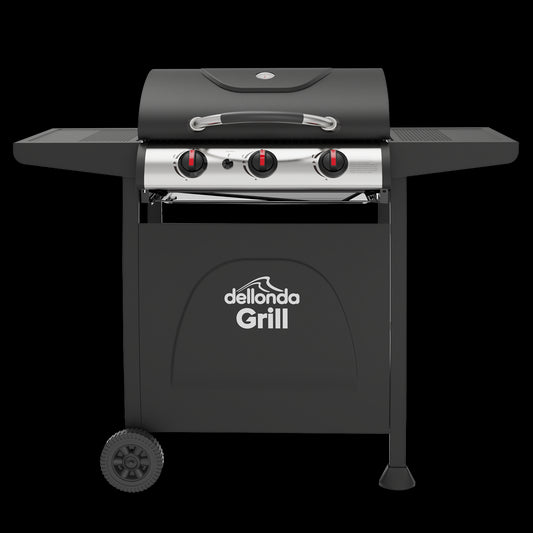 Dellonda 3 Burner Gas BBQ Grill, Ignition, Thermometer, Black/Stainless Steel DG14