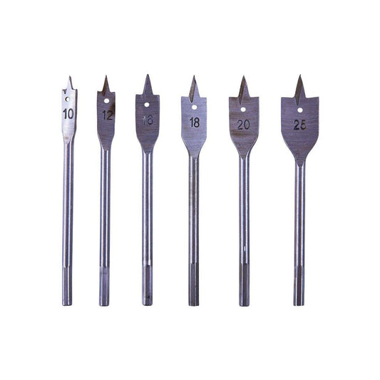 Amtech 6 Piece Flat Wood Drill Bit Set Carbon Hole Cutter Borer - F1400