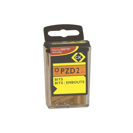CK Tools Screwdriver Bit PZD2 TIN Box Of 15 T4562TIN-215