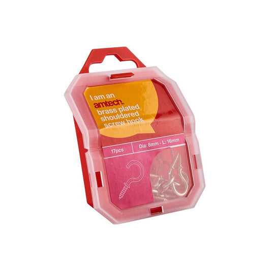 Amtech 16mm Brass Plated Shouldered Screw Hook 17 Quantity