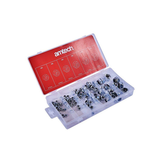 Amtech 100x Assorted Locking Nuts Bolts Storage Case Inserts Nyloc Professional - S6220