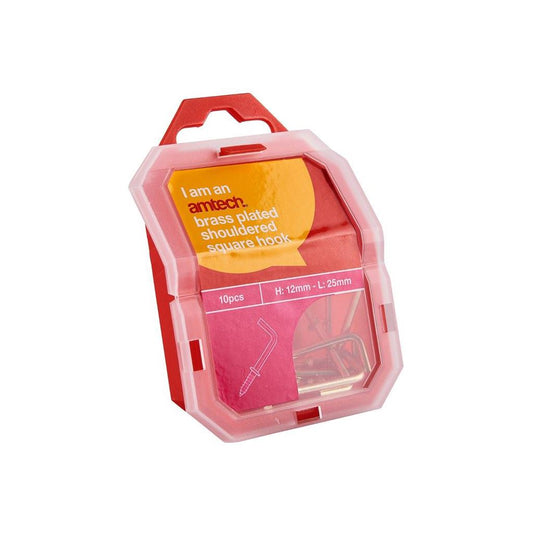 Amtech 25mm Brass Plated Shouldered Square Hook (10pc)