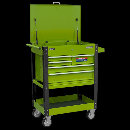 Sealey Superline Pro Heavy-Duty Mobile Tool & Parts Trolley with 5 Drawers and Lockable Top- Hi-Vis Green AP890MHV