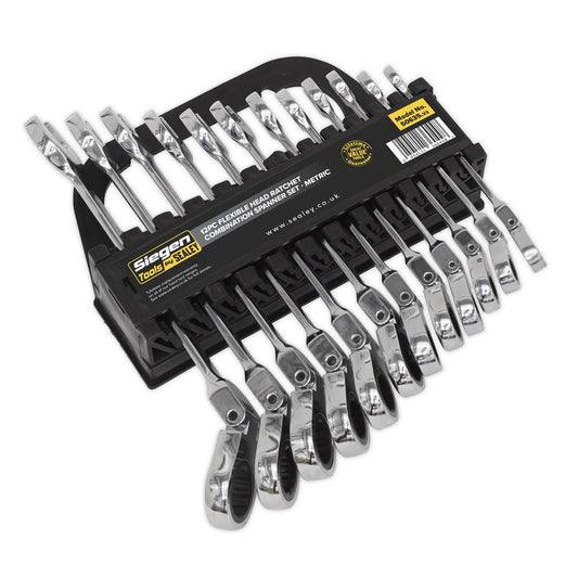 Sealey Flexible Head Ratchet Combination Spanner Set 12pc Metric S0635