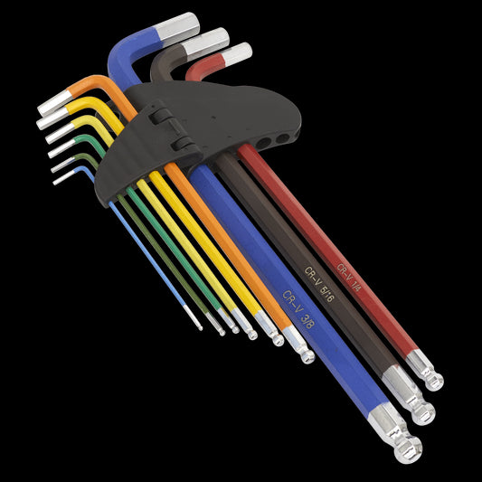 Sealey Ball-End Hex Key Set Extra-Long 9pc Colour-Coded Imperial AK7198