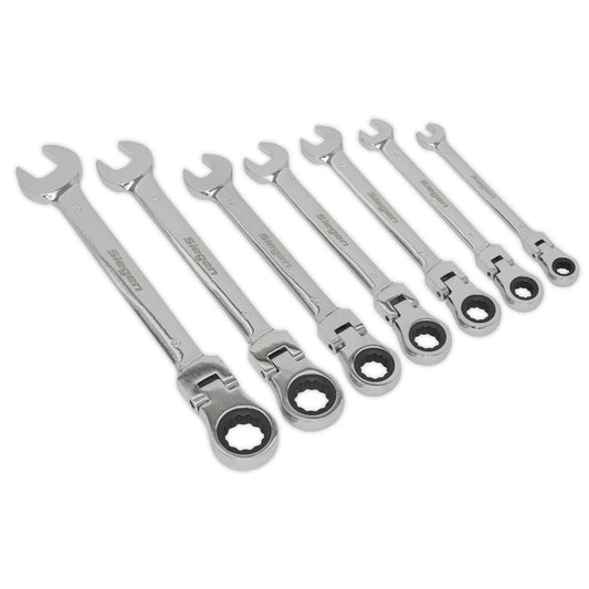 Sealey Flexible Head Ratchet Combination Spanner Set 7pc Metric S01143