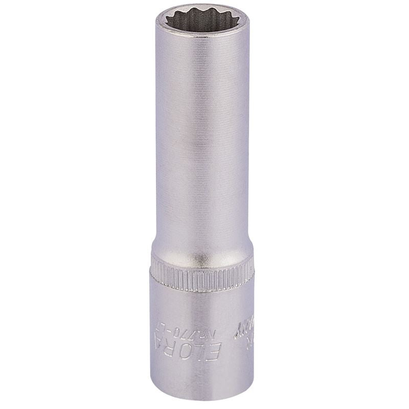 Professional Quality, sockets manufactured from chrome vanadium steel hardened, tempered and chrome plated for corrosion protection. Chamfered end allows positive nut location and entry. Hole for driving accessory spring - loaded ball. Overall length 80mm. Sold loose.