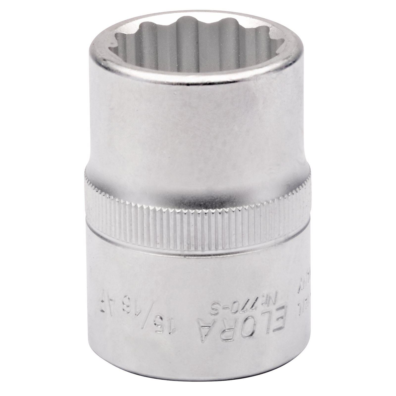Professional Quality, sockets manufactured from chrome vanadium steel hardened, tempered and chrome plated for corrosion protection. Chamfered end allows positive nut location and entry. Hole for driving accessory with locking pin. Some socket sizes have knurled band for extra hand grip. Sold loose.