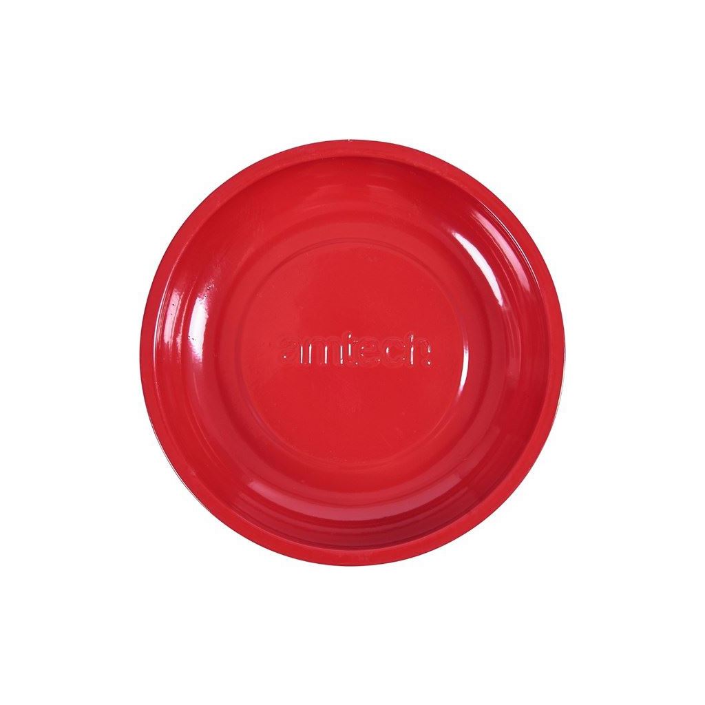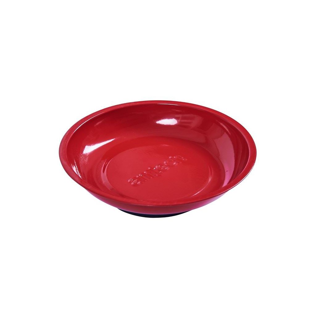 Round magnetic dish holds nuts, bolts, screws, washers, clamps and other small metal items. Super strong magnet. Great for mechanics.