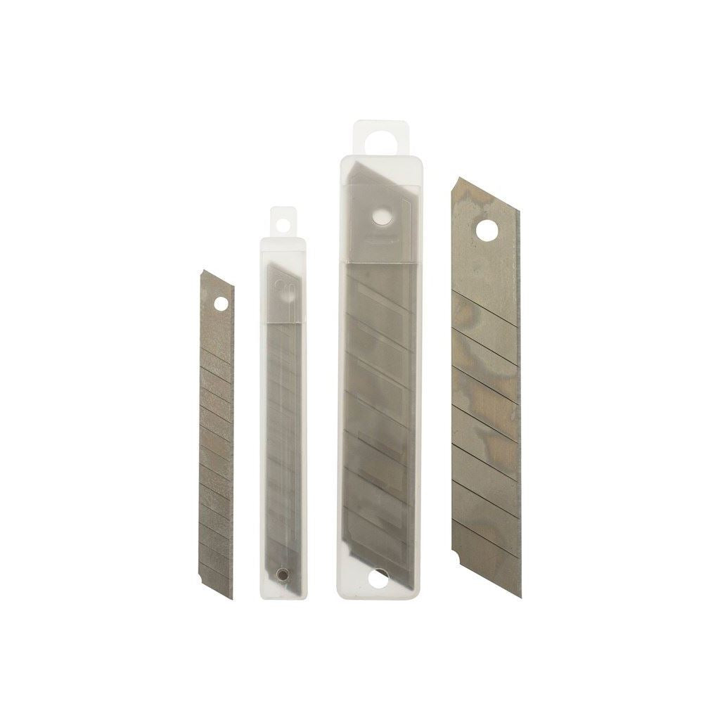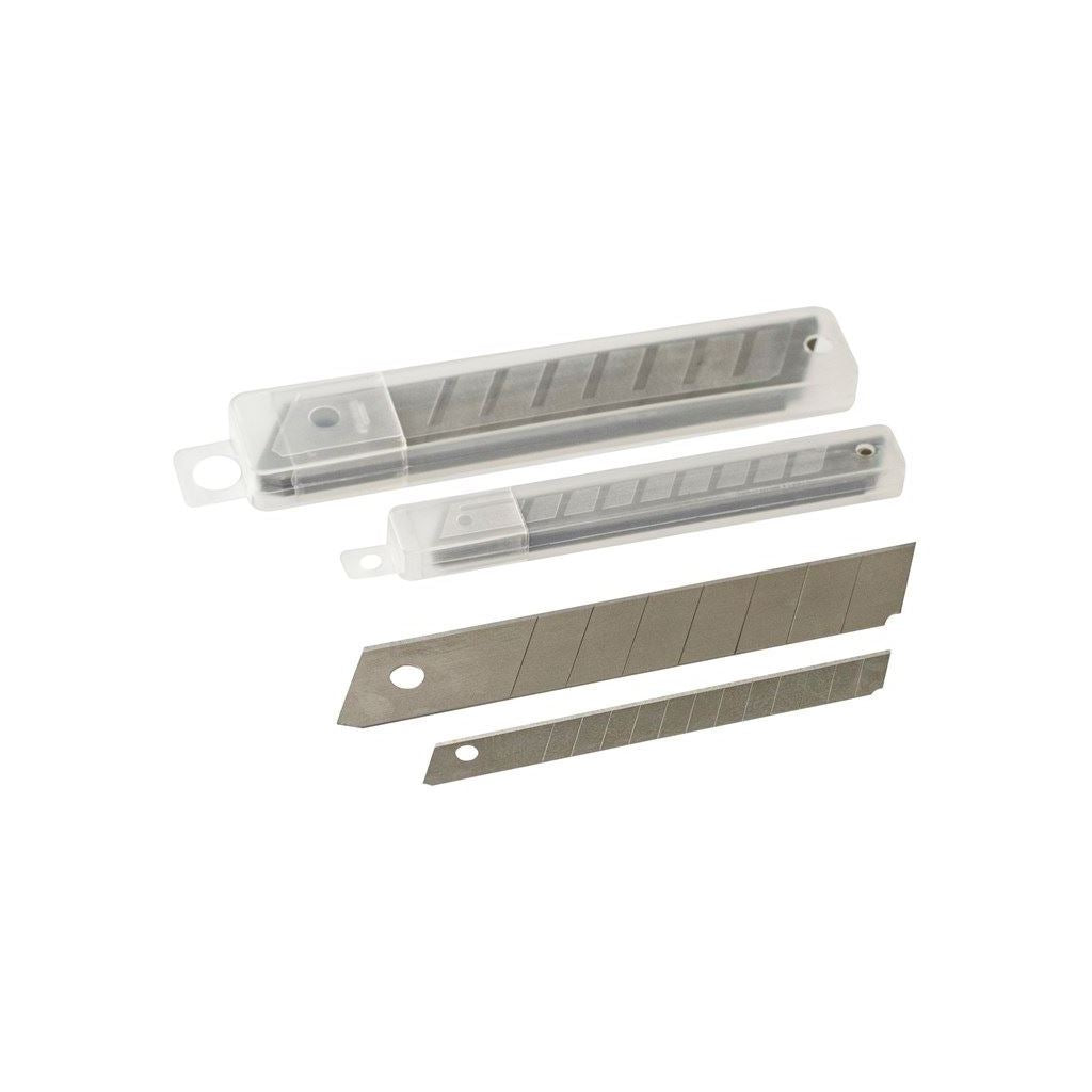 Hardened carbon steel HrC 55-60.10pc 9mm and 10pc 18mm blades in handy storage tubes.Compatible with Amtech S0150 snap-off knife.