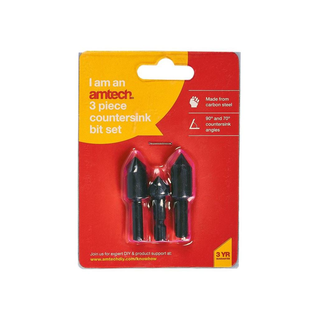 Amtech 3 Piece 1/4" 8mm 10mm 12mm Countersink Power Drill Bit Bore Set For Wood - F0820