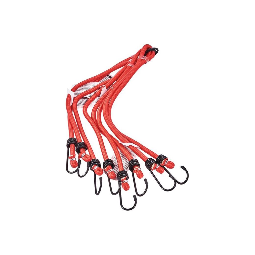 Ideal for securely fixing items down on tarpaulins, BBQs, outdoor equipment etc. Tough 8mm diameter elasticated bungee cords with plastic coated hooks. Maximum load rating 140N (14kgf).
