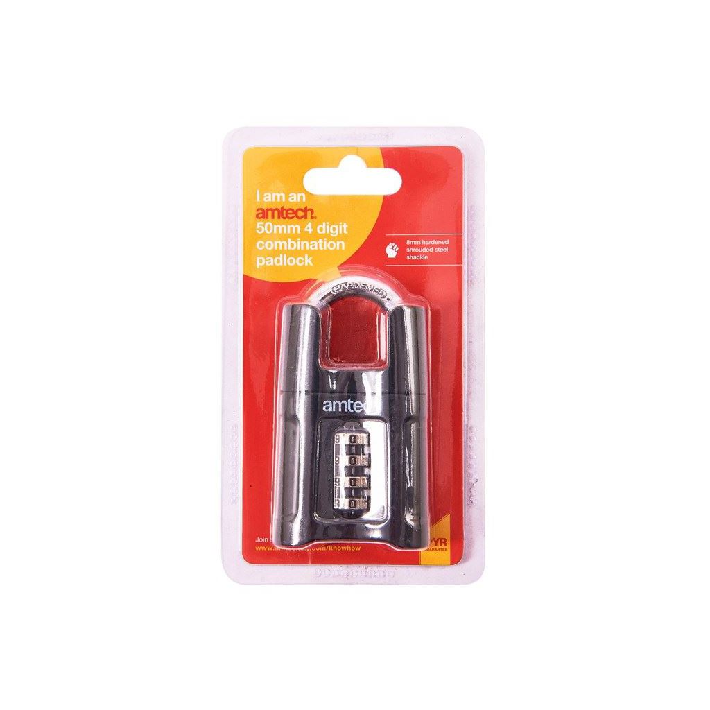 Amtech 50mm 4 Digit Combination Padlock Hardened Steel Lock Security Garage Door - T1147