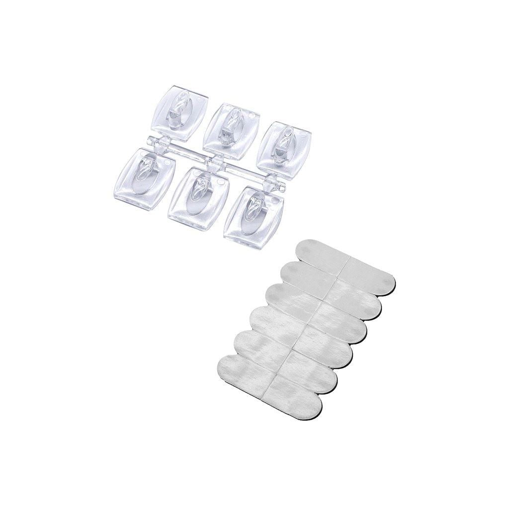 DURABLE: This 6 piece transparent, removable hook set is made from crystal clear, moulded Polystyrene plastic for durability. 200G (0.4LB) LOAD CAPACITY: With a maximum load capacity of 200g (0.4lb), they are ideal for keeping items like printer cables and wiring tidy. DIMENSIONS: Each hanging hook is 2.2cm (0.9”) x 2.8cm (1.1”) in size.