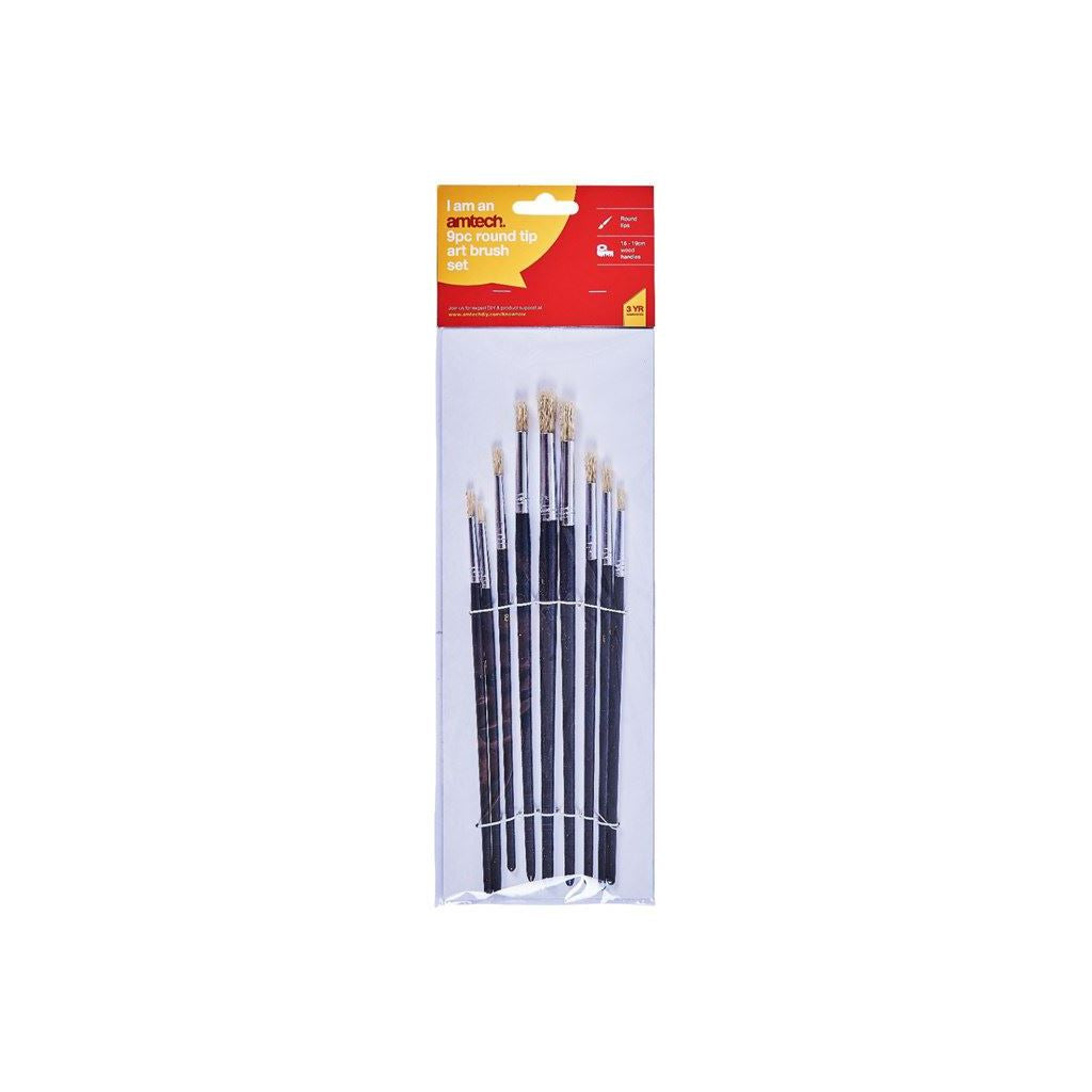 Amtech 9 Piece Round Tip Artist Paint Brush Set Professional Quality Art & Craft - S4135