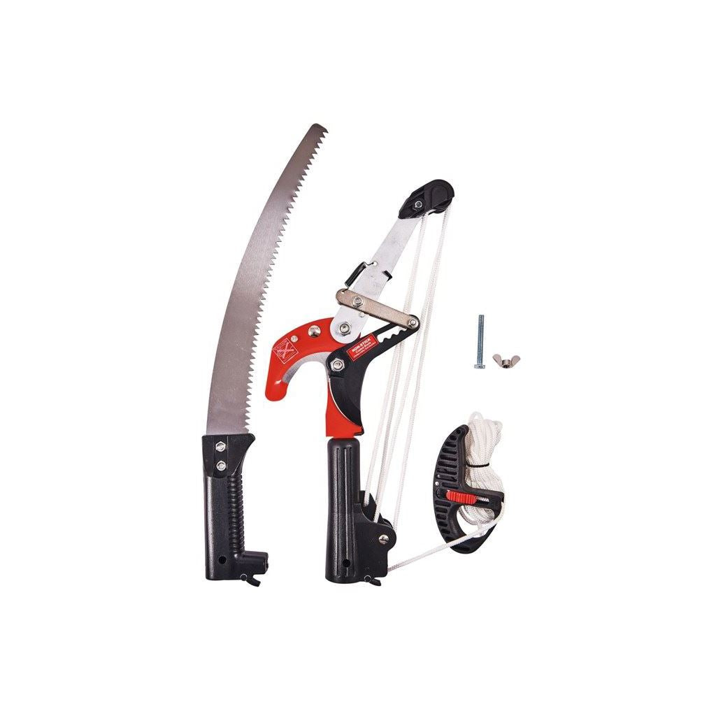 Ratchet action tree saw lopper for easier cutting. High carbon steel hardened blade. Non-stick coated blade protects against rust and corrosion. Supplied with extendible locking aluminium telescopic tubular pole extending to approx 96" (2400mm). Supplied with detachable saw blade.