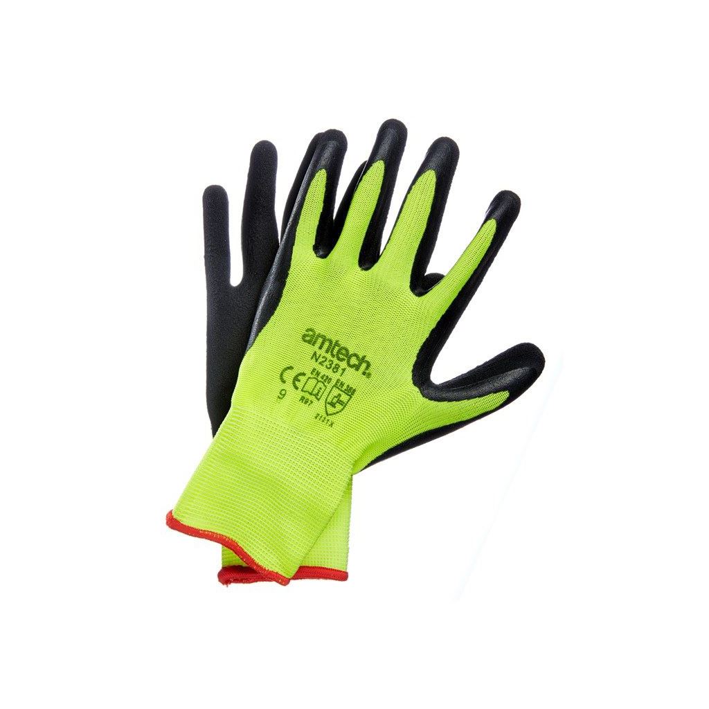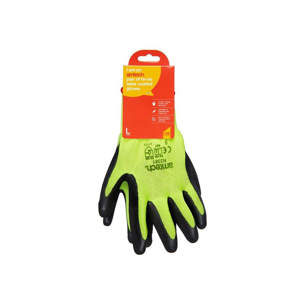 Amtech Hi-Vis Latex Coated Gloves Large Size:9 Durable High Quality - N2381