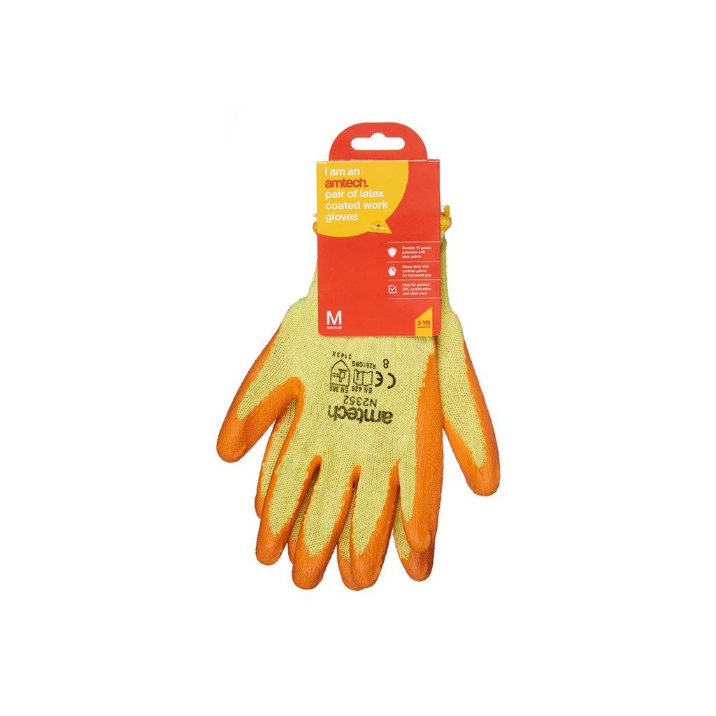 Amtech Latex Palm Coated Work Gloves Sizes M Size 8 Heavy Duty Ppe Diy - N2352