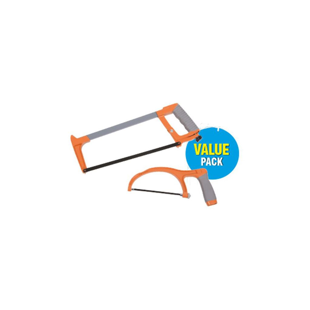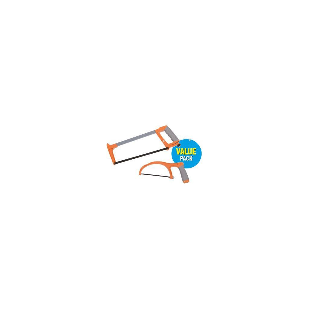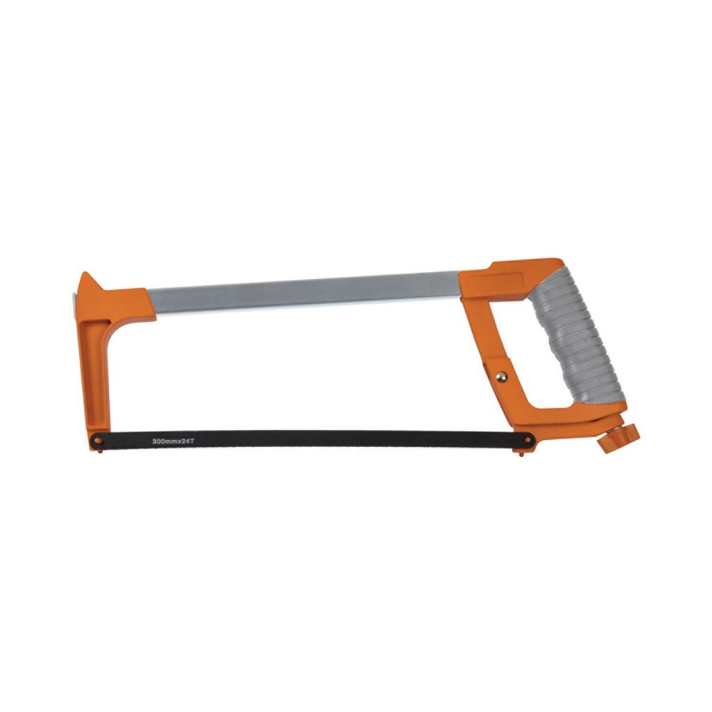 For cutting metal. Wing nut adjustment for quick and easy blade tensioning. Two position blade for straight and 45 degree angle cuts. Rubber handle for increased grip.