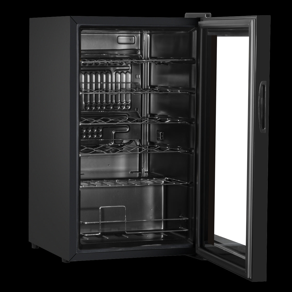 • Attractive tempered mirror glass door helps to reflect UV light and protect your wine while letting you see the contents at a glance.