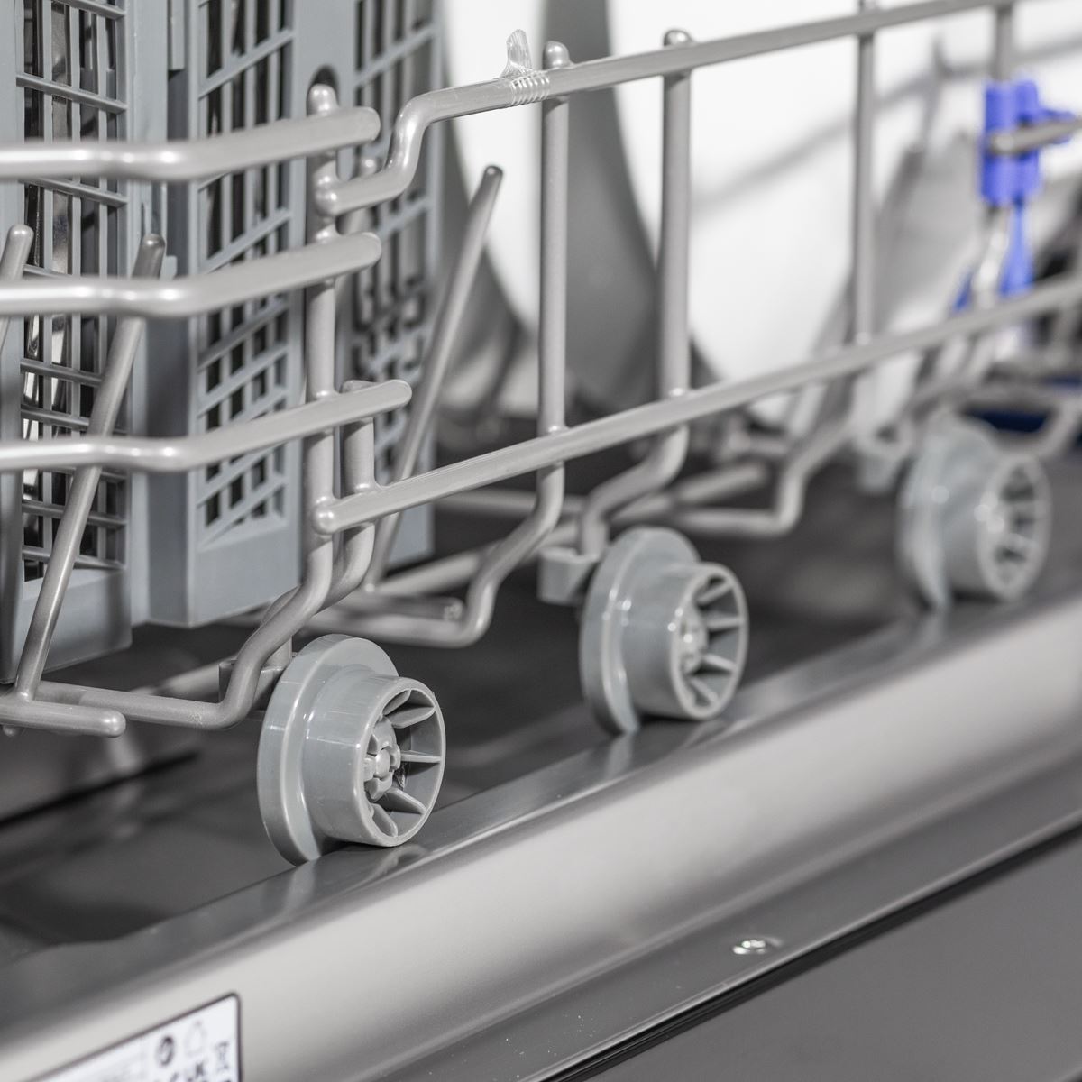 • This small dishwasher will take up less space in your kitchen with its slimmer body while still being able to easily fit larger plates, pots and pans up to 26cm in diameter.