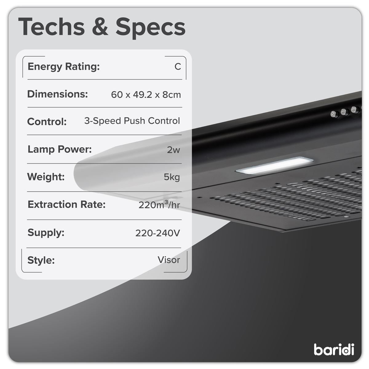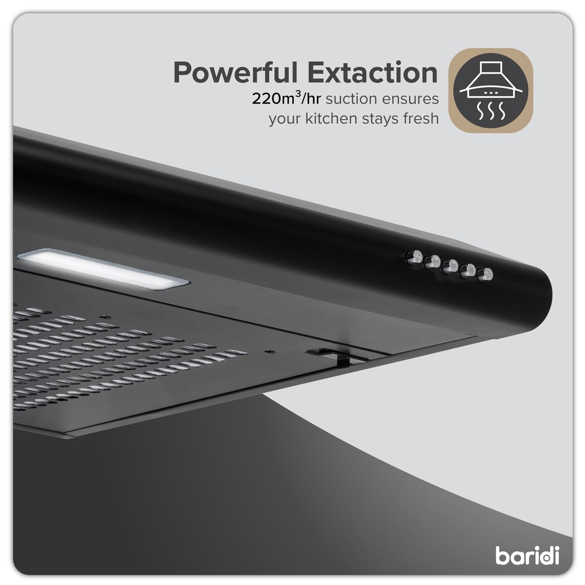 Baridi Visor Cooker Hood Extractor Fan 60cm - Black DH107
