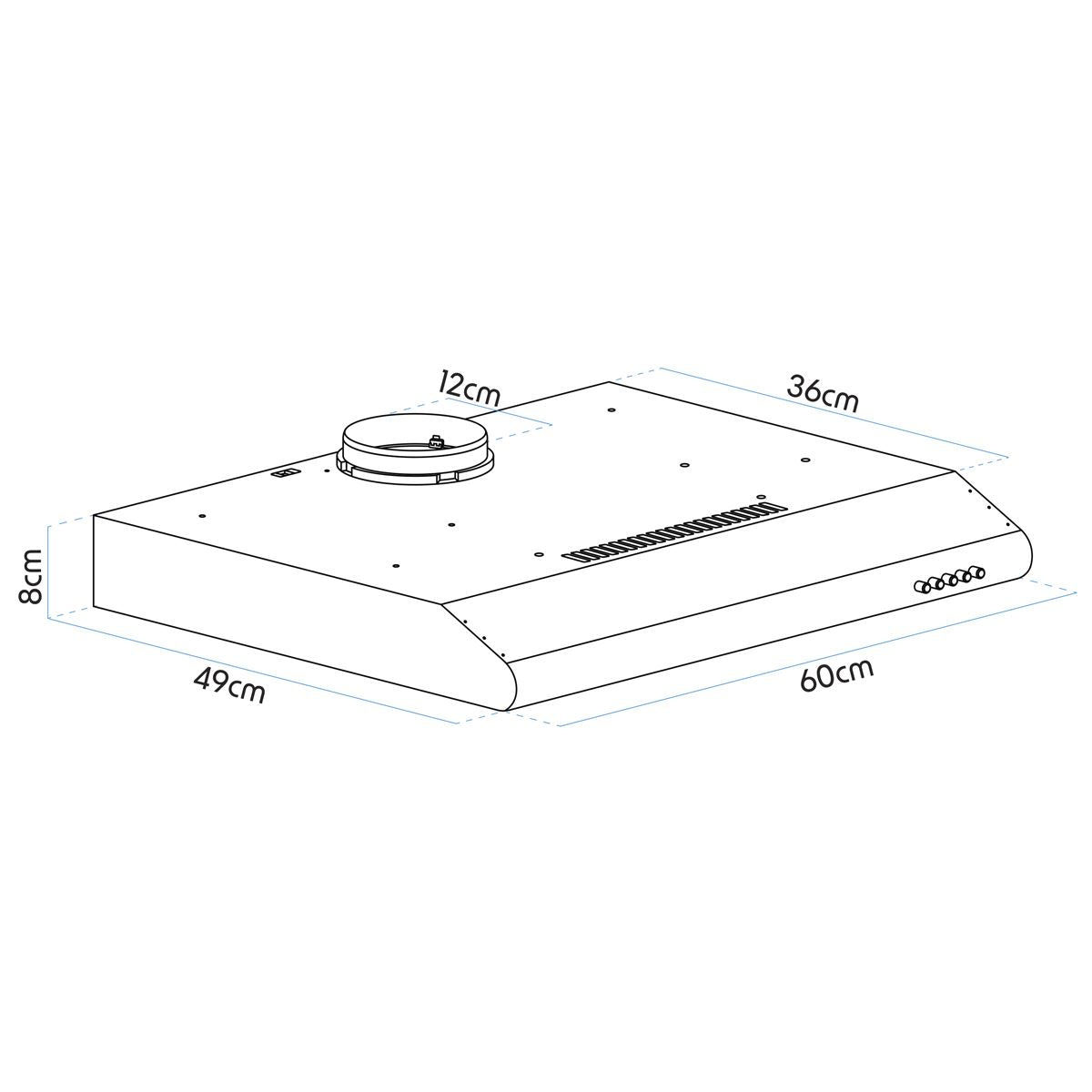 • 60cm Chimney style cooker hood covers the majority of cookers and hobs.
