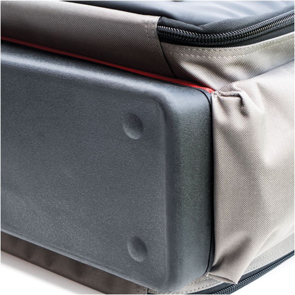 Benefiting from 35% greater capacity, the Technician's Tool case Max features a wide central compartment and deep side panels, perfect for storing electronic equipment and larger tools.. Extra wide central compartment for test equipment and larger tools. Extra deep square pockets for easy tool access. Removable and adjustable divider for maximum flexibility. 100% waterproof and crack proof base. Retaining straps to avoid tripping hazard. Heavy duty, pierce protected zips for long life and performance