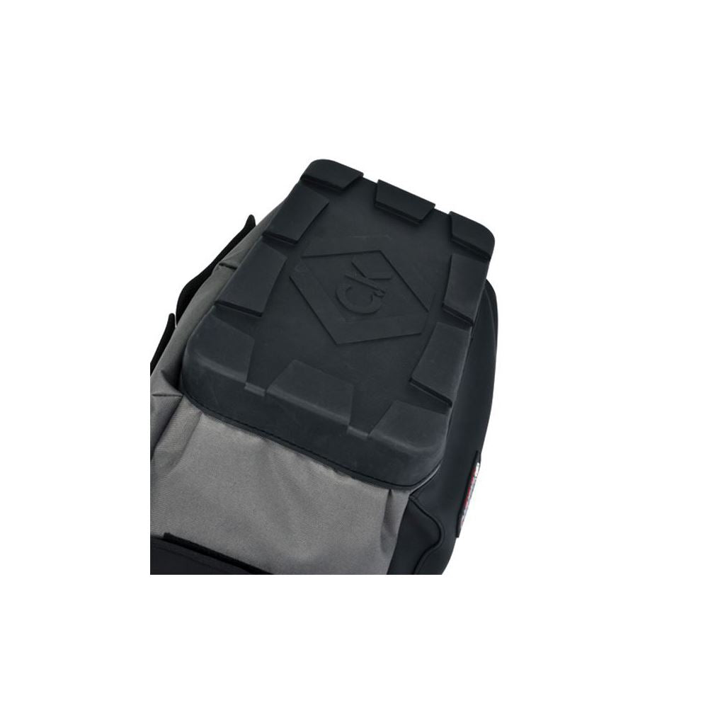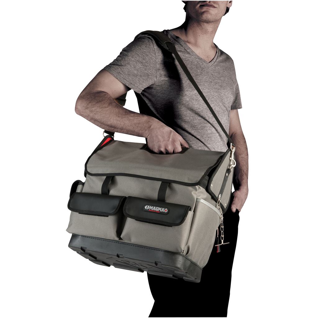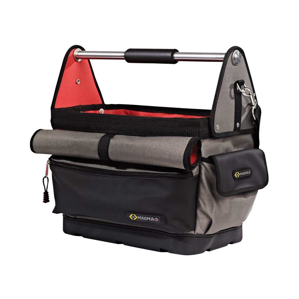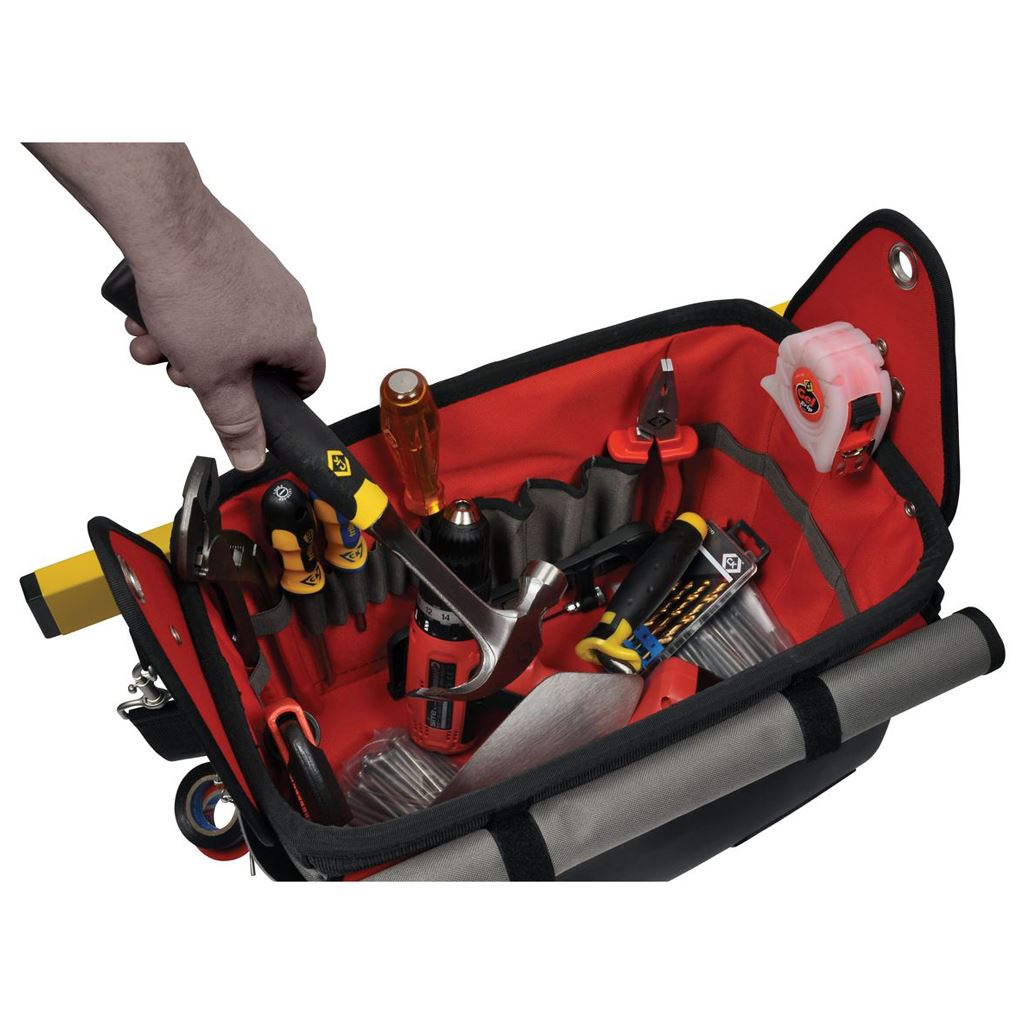 Durable polyester construction. Bright red inner lining for easy visibility of stored items. 100% waterproof and crackproof rubberised base. Convenient detachable handle and padded shoulder strap for maximum comfort. Roll-up cover. Large internal storage area with 32 additional pockets & holders.