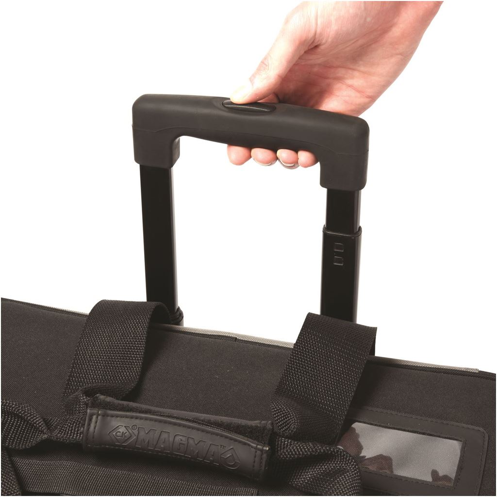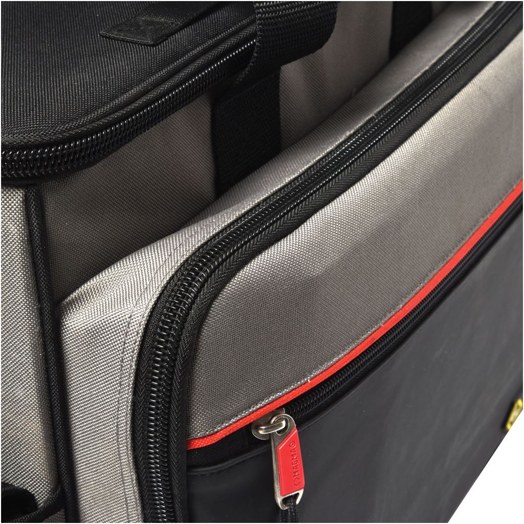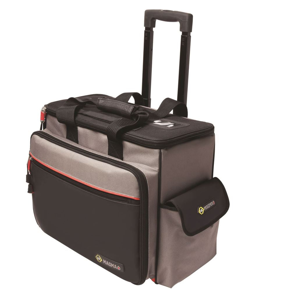 Designed to cope with all terrains and larger tool kits, the new Technician�s Wheeled Case provides the perfect solution to effortlessly getting your tools to the job. Rugged and durable chassis, wheels and telescopic handle for all terrain use. Tough 600D polyester construction. Zip down front panel featuring Tool and A4 document storage. Balanced design for effortless movement of larger toolkits, test equipment and power tools. Extra wide main compartment featuring a red lining for high tool visibility. 30 deep square pockets and tool holders for efficient tool storage.