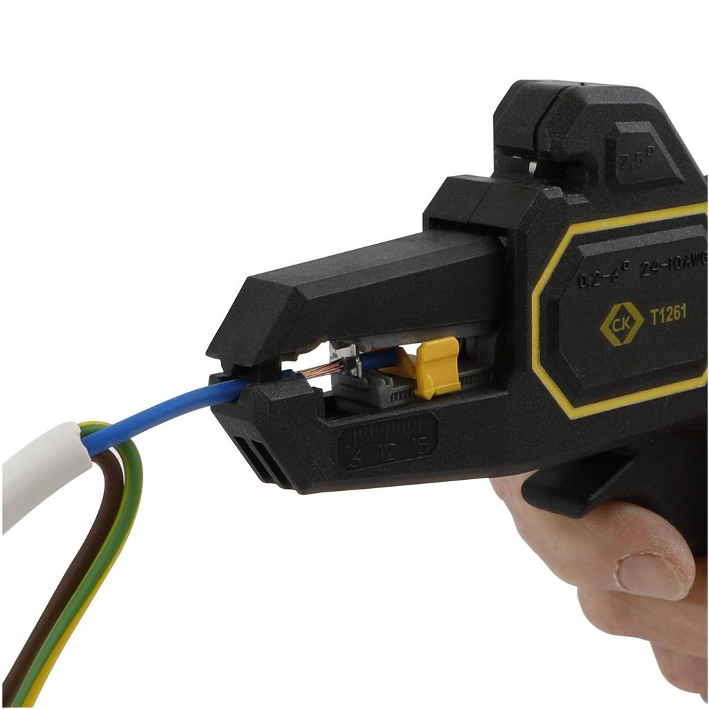 Designed for stripping solid & stranded wires from 0.2 6.0 mm� (24-10 AWG).. Automatic wire size adjustment for convenience.. Integrated wire cutter.. Comfortable dual-compound soft grip handle design.. Adjustable length stop (6-18mm).. Replaceable blades.