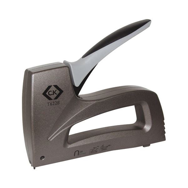 Heavy duty construction featuring a tough cast aluminium body for strength and durability. Bi-material ergonomic handle for comfort and reduced fatigue. Fast and convenient staple loading and clearing mechanism. Handle safety locking system prevents accidental operation. Fires half round staples for use on telecom data cable max 4.8mm diameter.