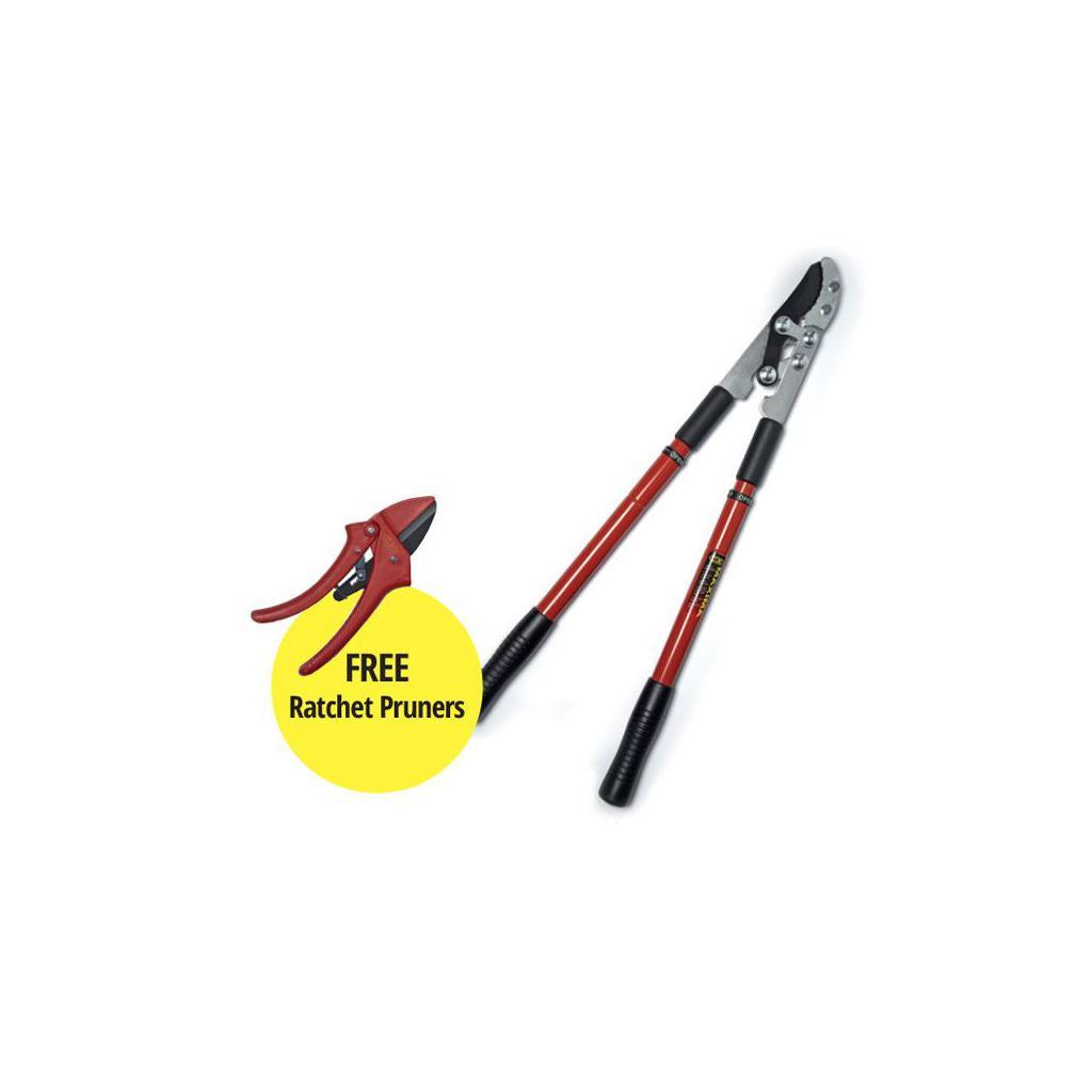 Heavy duty construction, ideal for older tougher wood up to 35mm diameter. Precision ground hardened carbon steel blade for a sharp clean cut. Blade non stick coated for rust resistance and low friction operation. Anvil features gripping serrations for holding branches securely while cutting. Lever action jaws for easier higher capacity cutting. Tubular steel shafts with 'twist to adjust' telescopic action. Moulded non slip grips for comfort and control.