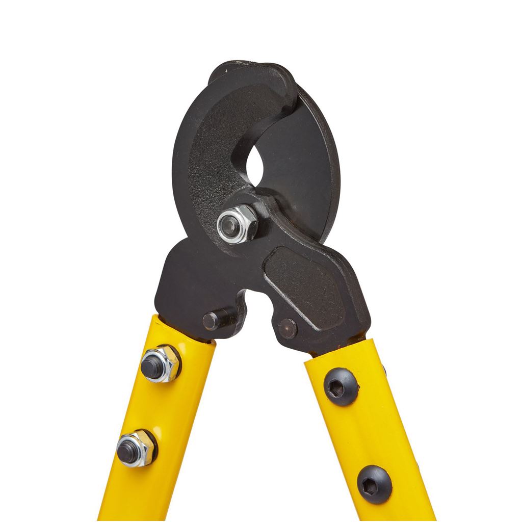 High-grade special tool steel cutting jaws, forged and hardened for an extended working life . Parrot-beak cutting jaws to prevent cable slippage . For large diameter copper and aluminium cables up to 27 mm�. Not for use on steel or ACSR cable.