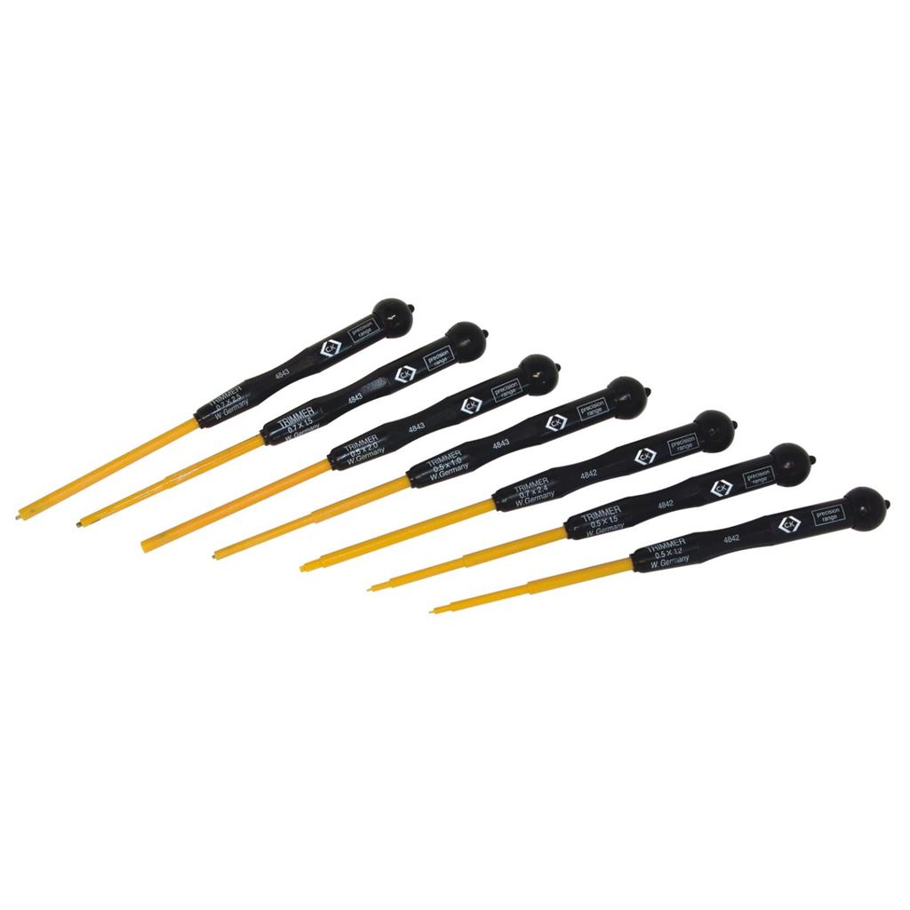 ESD compliant thermoplastic construction. Swivel caps for precise control. . Contents: Slotted 0.5x1.2, 0.5x1.5, 0.7x2.4, 0.5x1.0, 0.5x2.0, 0.7x1.5 & 0.7x2.5mm.
