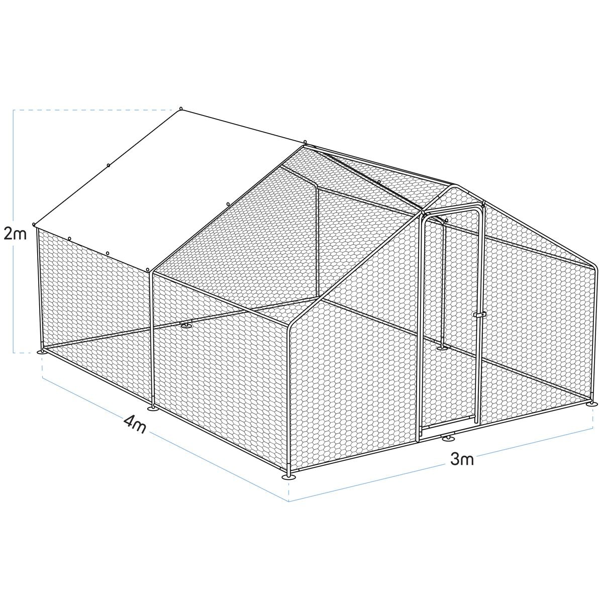 Dellonda 3x4x2m Walk-In Chicken Run, Galvanized Steel, Roof Cover, PVC Coated Chicken Wire DG279