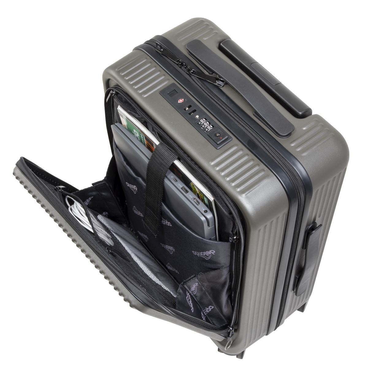 Compact 20" dimensions (52 x 37 x 22cm) ensure compliance with cabin size restrictions, making it ideal for hassle-free business & leisure travel without the need to check in luggage. Featuring two dedicated laptop compartments, this suitcase provides secure and easily accessible storage for both your work laptop and personal devices. Equipped with dual TSA-approved locks, your belongings remain secure during travel. Using these Travel Sentry� Approved Locks allows your luggage to be opened, inspected and relocked by security authorities without damage. For more information, visit: www.travelsentry.org A built-in USB port allows you to conveniently charge your devices on the go via connection to a powerbank. Features 4 x 360� Spinner wheels, making it effortless to navigate through crowded airports, train stations, or busy business environments.