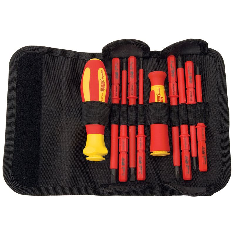 Draper 10 Piece VDE Insulated Interchangeable Screwdriver Set in Tool Roll - 05721