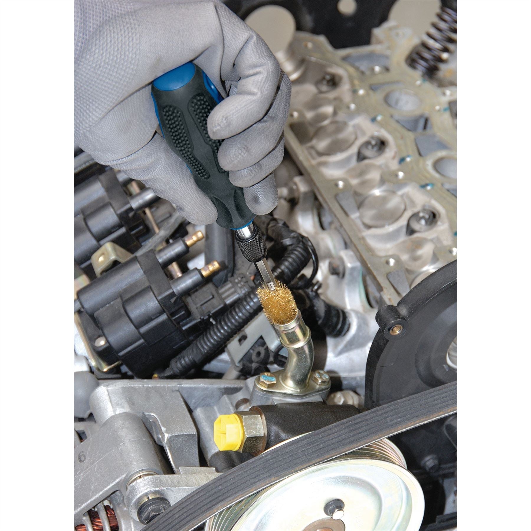 Suitable for a variety of uses including internal/external thread cleaning, cleaning drilled holes and cleaning small bore holes etc. Set comprises six nylon brushes, six stainless steel brushes, six brass brushes, soft grip magnetic handle and a 150mm magnetic extension. Supplied with canvas fold up case. Display packed.