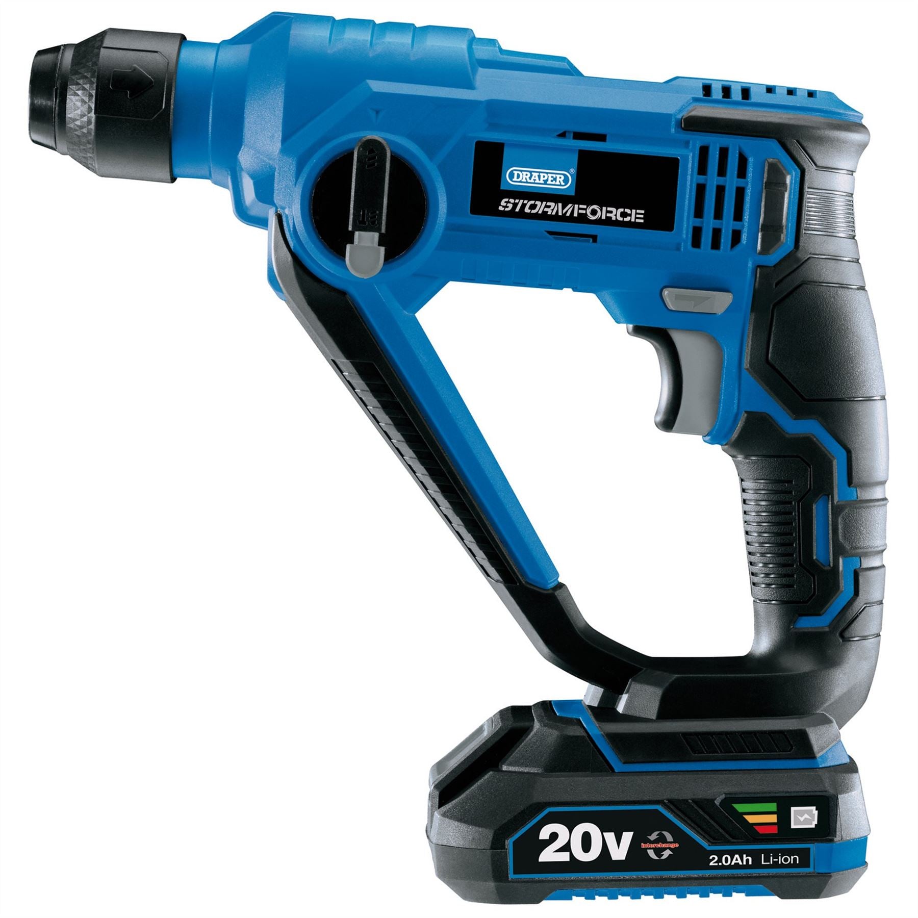 Features: Part of the Draper Storm Force 20V Power Interchange series, 2 functions - Drill, Hammer, Variable speed, Rear hand grip, LED worklight, Batteries and chargers are available separately. Draper Storm Force 20V interchangeable battery system allows you to combine one battery with any of the tools within the 20V Storm Force series (not compatible with Draper Storm Force 10.8V).