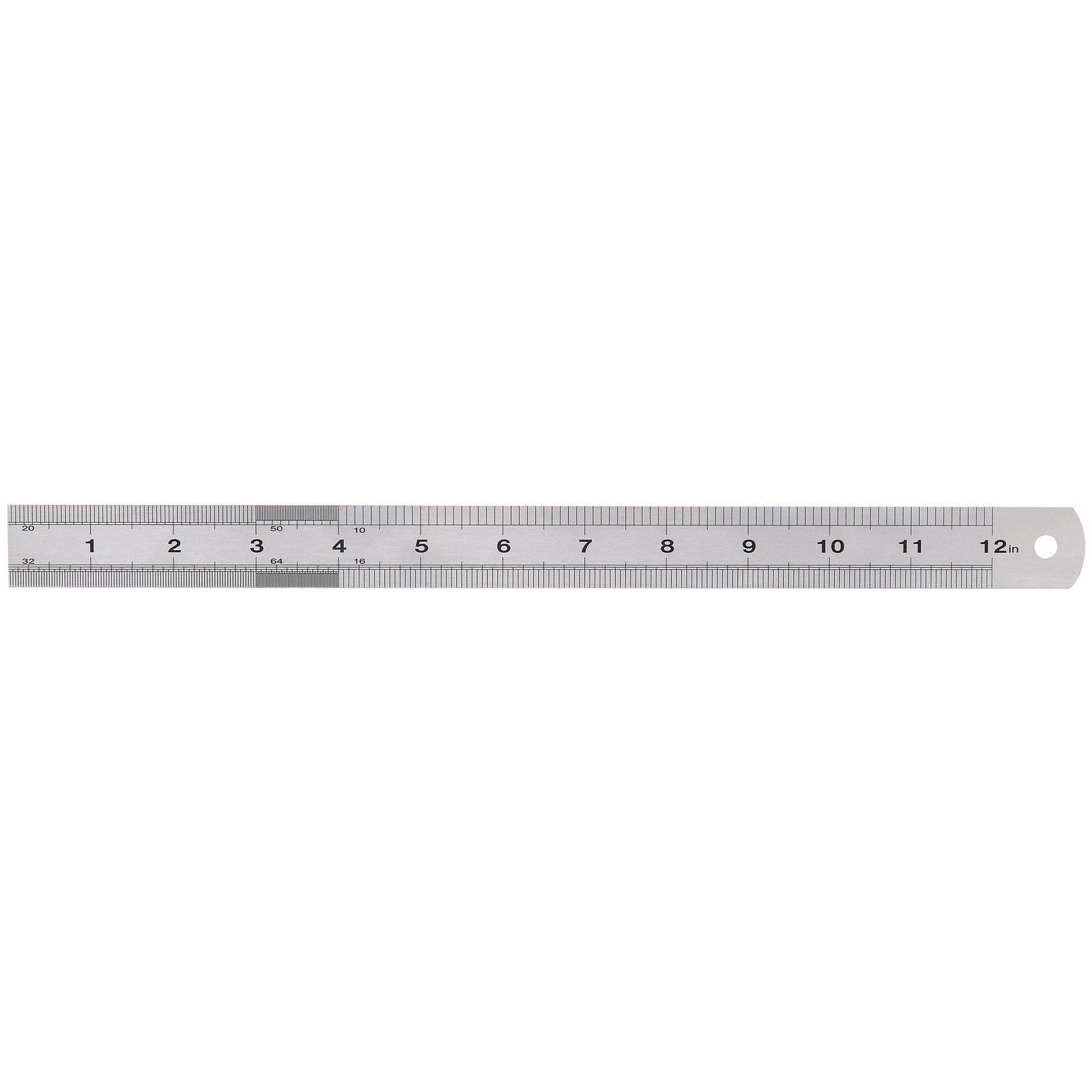 Expert Quality, precision rules manufactured from hardened stainless steel matt chrome plated. The clear black graduations of 0.5mm, mm, 0.5cm, cm and 1/64", 1/50", 1/32", 1/20", 1/16", 1/10", 1/2", and inches on the reverse are permanently etched for long service life. Packed into vinyl wallets. Display packed.