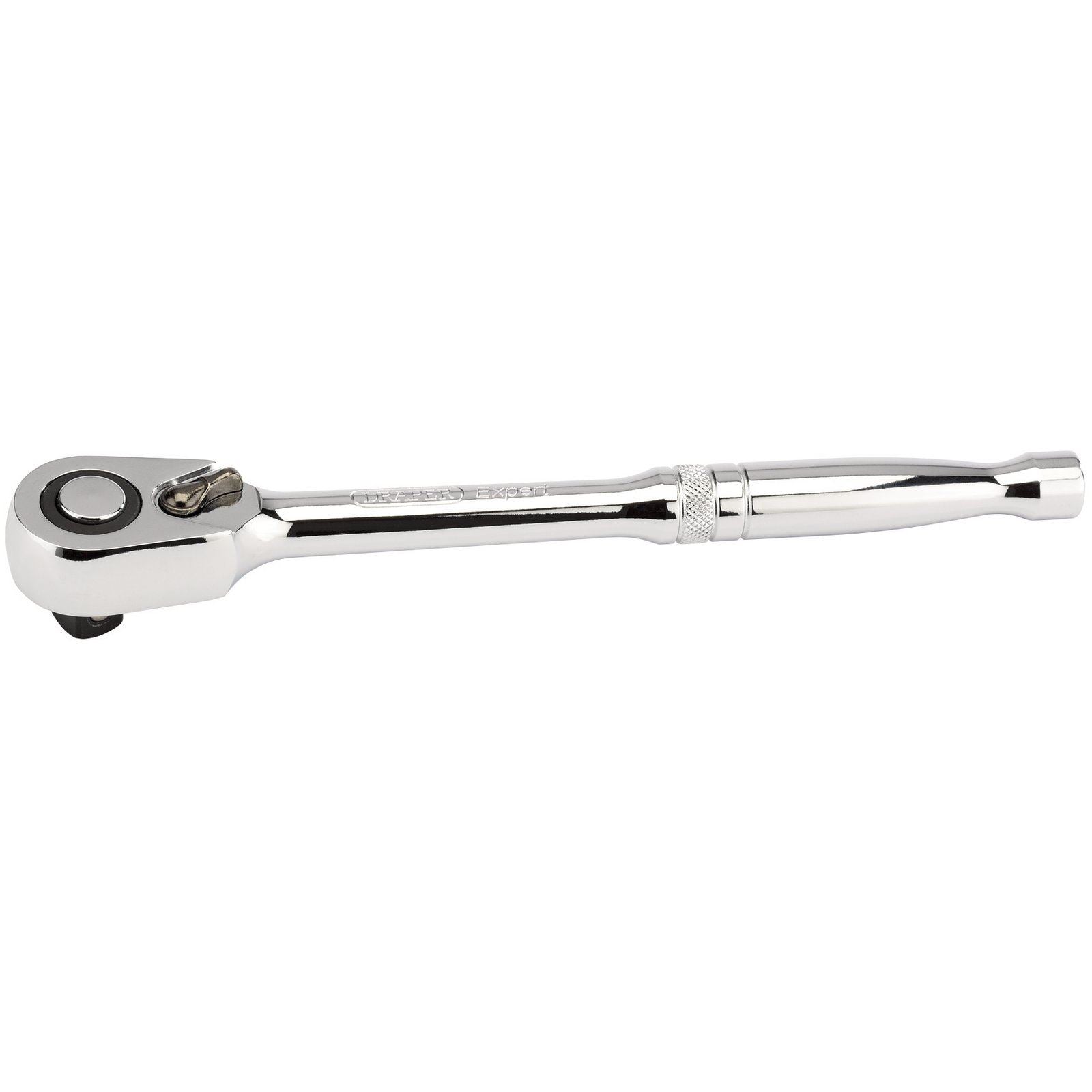 Expert Quality, 72 tooth reversible ratchet with solid handle and quick release button. Chrome vanadium steel head and shaft with polished finish. Display packed.