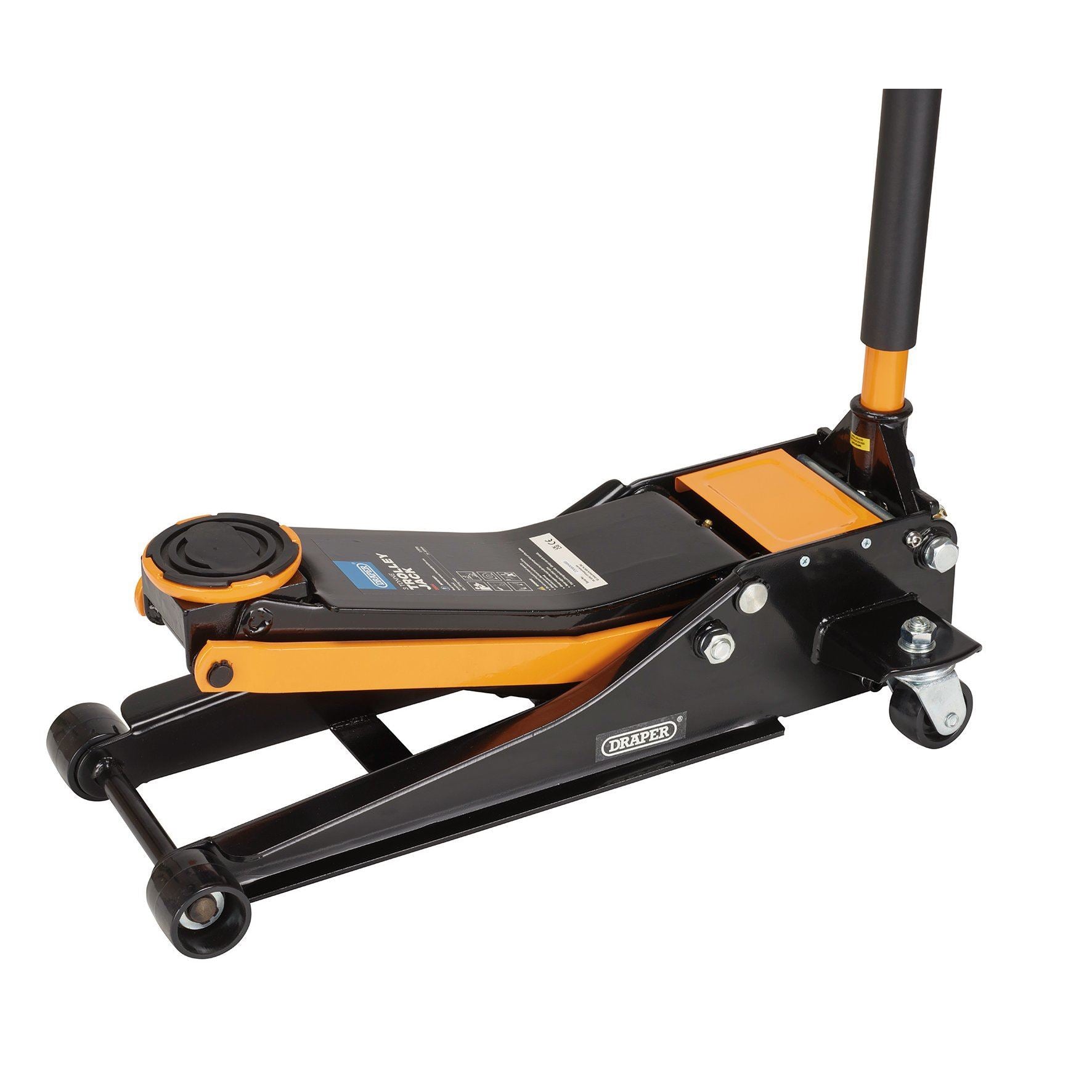 These low-profile trolley jacks are capable of lifting from 75-505mm and they have a capacity of 3 Tonne. They have a twin-piston quick lift facility, with eight pumps to enable them to reach maximum height efficiently. The twin spring return system ensures the jacks lower safely when not under load. They are fitted with a twin safety valve to prevent the jacks from overloading. There is an integrated rubber saddle pad to prevent damage to the underside of the vehicle when in operation. There is also an EVA foam handle cover to prevent panel damage. The knurled handgrip on the end of the lifting arm enables a more secure hold when used. Fitted with hardwearing nylon wheels with rear swiveling castors, for quiet and smooth operation. These wheels also prevent damage to garage floors.